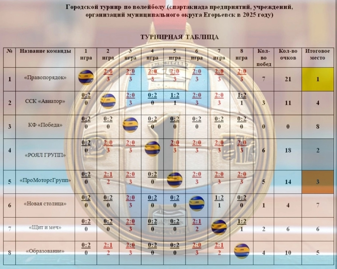 05 декабря во Дворце спорта «Егорьевск» состоялись финальные игры городского турнира по волейболу в зачет Спартакиады предприятий, учреждений, организаций муниципального округа Егорьевск в 2025 году.